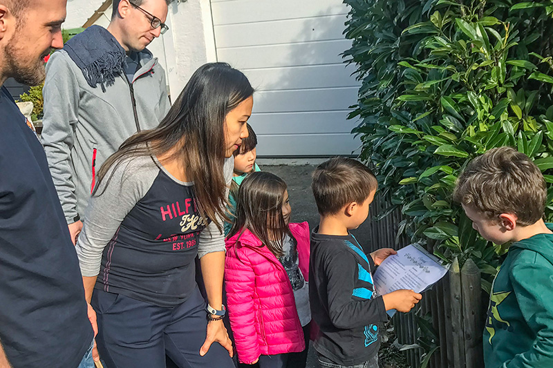 33 Familien haben die Gelegenheit genutzt, sich den Sonntagsspaziergang mit einem Quiz rund um die Märchen der Gebrüder Grimm (und am Schluss auch noch mit Kuchen) versüssen zu lassen. In Gruppen von zwei bis drei Familien zogen sie gutgelaunt durch die Bergdietiker Strassen, angeführt von einer Schar Kinder, die gespannt auf der Suche nach dem nächsten Hinweis waren. Da erntete manch ein gemütlich dahin schlenderndes und plauderndes Grüppchen Erwachsener ungeduldige Kommentare der Kinder: «Chömeder äntli? So findemer dä Schatz nie!» Wer hätte das gedacht …?