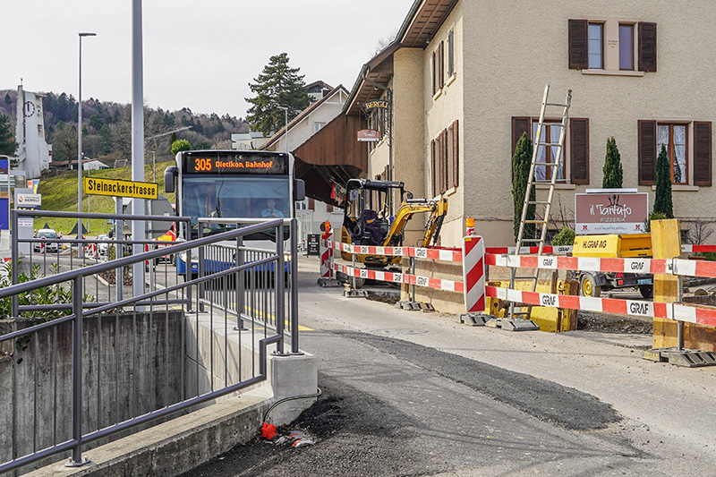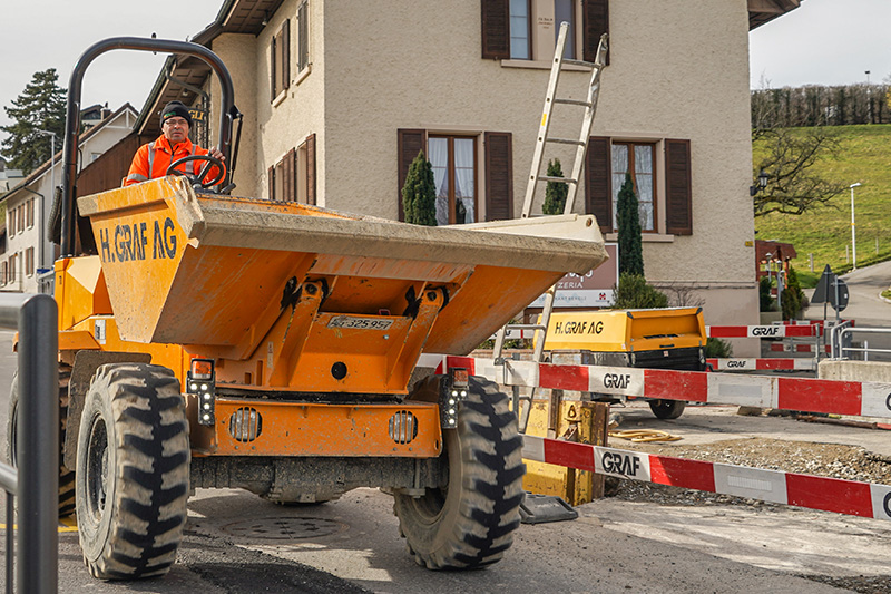 Die Arbeiten am letzten Los, startend an der Kreuzung bis zur Unterführung, sind anfangs Januar in Angriff genommen worden. Die Arbeiten gehen gut voran. Die Baustelle rund um den Volg – an welcher das Bauunternehmen Graf ebenfalls beteiligt war, allerdings beauftragt durch die Bergli Immobilien AG – konnte mittlerweile abgeschlossen werden.