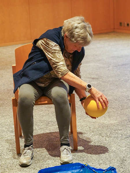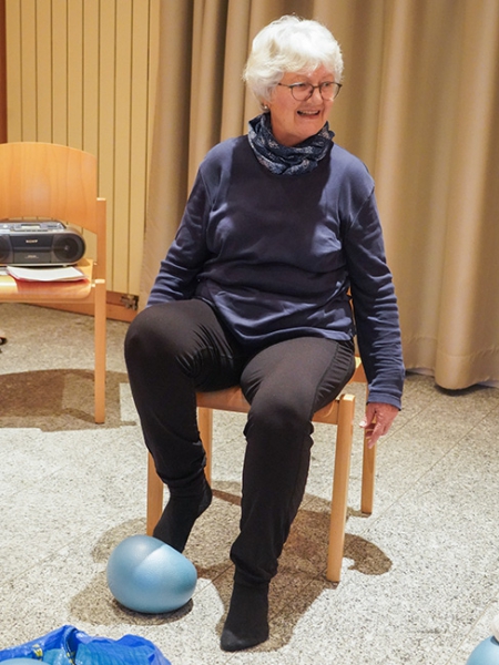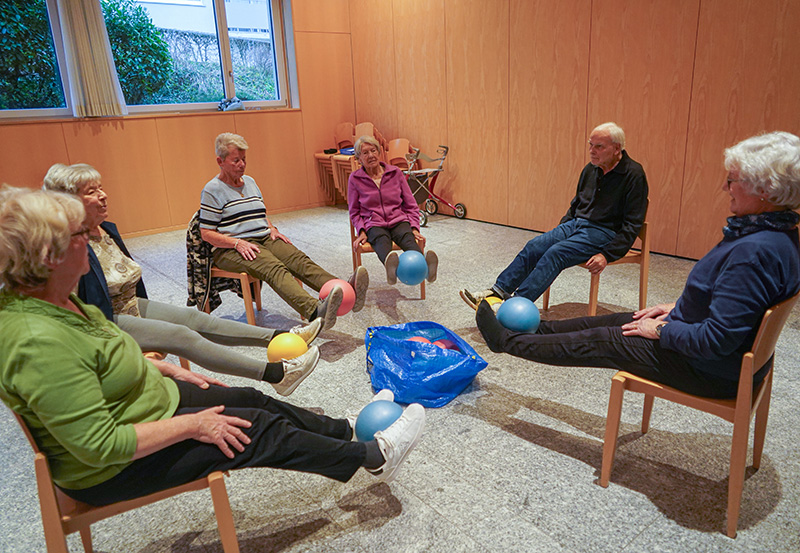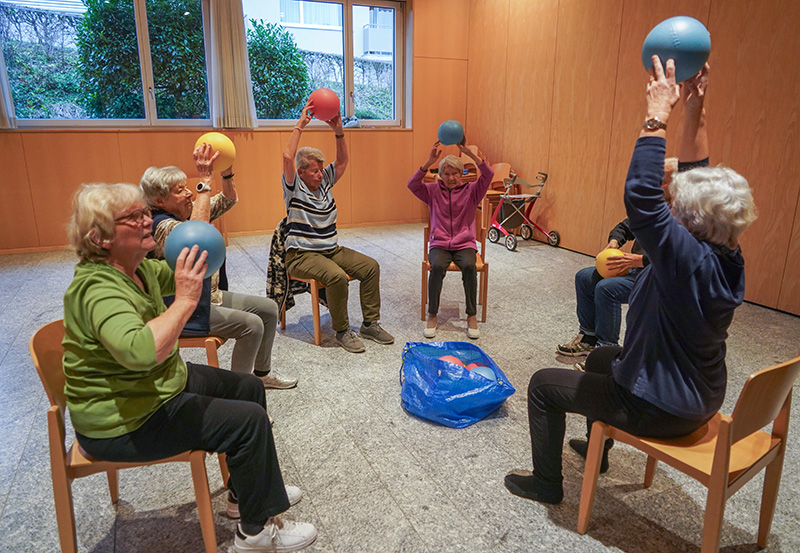 Kleine Hilfsmittel bringen zusätzliche Trainingsreize und kurzweilige spielerische Abwechslung. Es wird viel gelacht, und auch das Gedächtnis kommt in Schwung. Für viele Teilnehmenden ist die Turnstunde auch ein wichtiger Teil ihres aktiven sozialen Lebens in einem unbeschwerten Umfeld, wo man sich wohlfühlt.