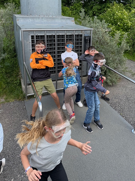 In der Trocknungskabine wurden wir schnell wieder trocken, bevor es weiter zum Windkanal ging, dies war ein weiteres Highlight. Dort konnten die Kinder erleben, wie es sich anfühlt, in einem richtigen Sturm zu stehen: Haare flogen, Jacken flatterten, und der Spass war nicht zu übersehen. Bevor wir uns auf den Heimweg machten, durfte natürlich das obligatorische Gruppenfoto nicht fehlen.