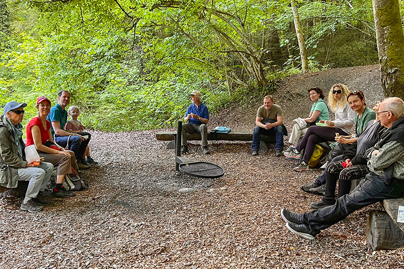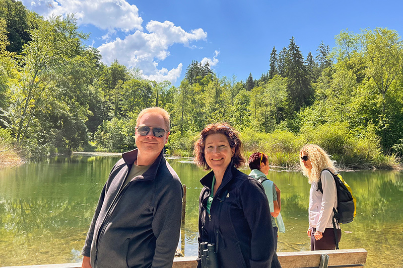Diese rechtswindende Schlingpflanze ist eine beliebte Grenz- oder Sichtschutzpflanze, da sie nicht nur hübsche Blüten trägt, sondern auch schnell wächst und eine Höhe von bis zu zehn Metern erreichen kann. Sie gilt damit als optimale Alternative für den Kirschlorbeer, der als invasiver Neophyt seit 2024 hierzulande nicht mehr verkauft oder neu angepflanzt werden darf.Wie jedes Mal ging auch diese Exkursion mit Koni viel zu schnell zu Ende. Aber da er noch viele spannende Themen für uns in petto hat, sagen wir an dieser Stelle: «Vielen Dank, wir freuen uns schon aufs nächste Mal!»