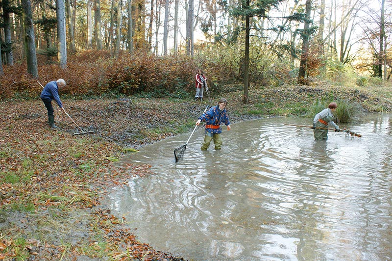 1981 wurde der Waldweiher () mit Leuten aus der Gemeinde und Schulklassen zusammen zum ersten Mal saniert. Daraufhin wurde die Naturschutzgruppe gegründet. Der Teich und die Umgebung sind zwar in Privathänden, aber jedes Jahr im Herbst führt die Naturschutzgruppe einen Grosseinsatz durch. Ziel ist es, die Überdüngung durch herabfallendes Laub etc. zu verhindern. Vor Jahren wurden im Zuge einer Zivilschutzübung mit dem Förster zusammen diverse grosse Bäume herausgenommen. Nun hat der Teich viel mehr Licht, was allerdings neue Probleme aufwirft. Sumpfschwertlilien, Seggen und Binsen wurden vorsichtig ausgebaggert. Dieses Jahr sind viele Amphibien zurückgekehrt.